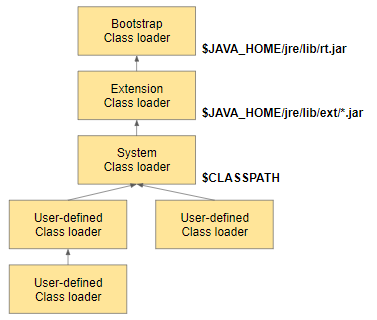 - 클래스 로더는 클래스 또는 리소스를 찾기 위해 요청을 받았을때, 상위 클래스 로더에게 책임을 위임하는 위임모델을 따른다
