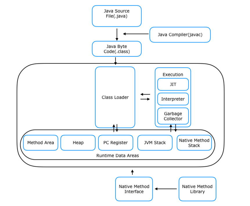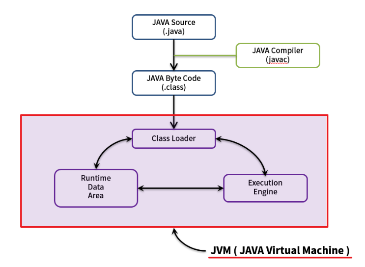 JVM은 자바.class파일을 클래스 로더를 통해 읽어와서 자바 API와 함께 실행한다.