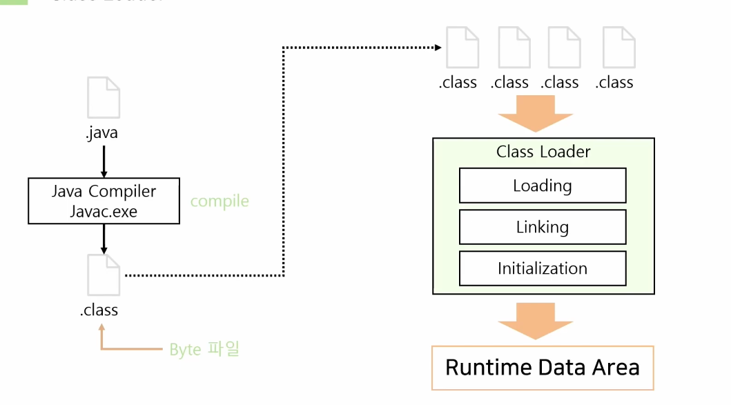 JVM으로 바이트코드(.class)를 로드하고, 링크를 통해 배치하는 작업을 수행하는 모듈