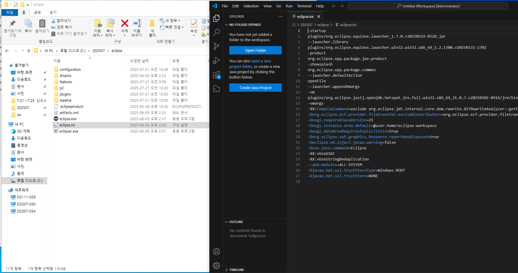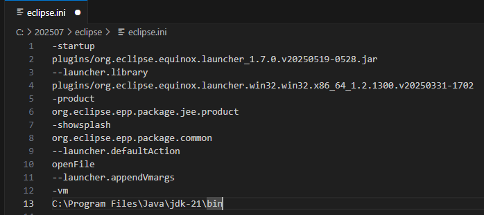 eclipse.ini 파일 마지막 줄에서 '-javaagent:C:\202507\eclipse\lombok.jar' 확인