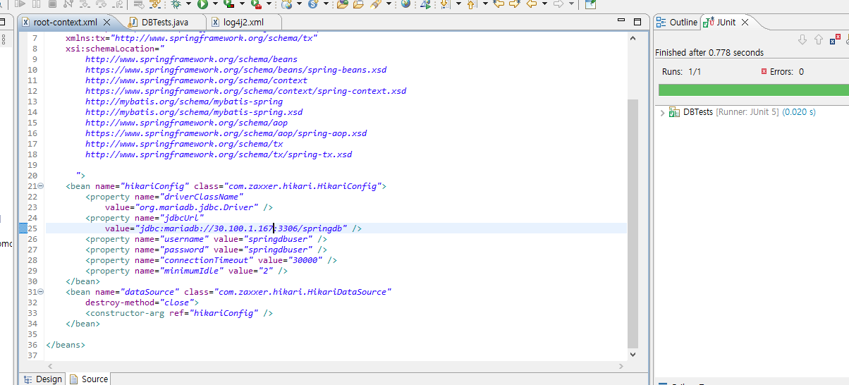 위 두 줄은 DBTests.java 에 C&P 한다.