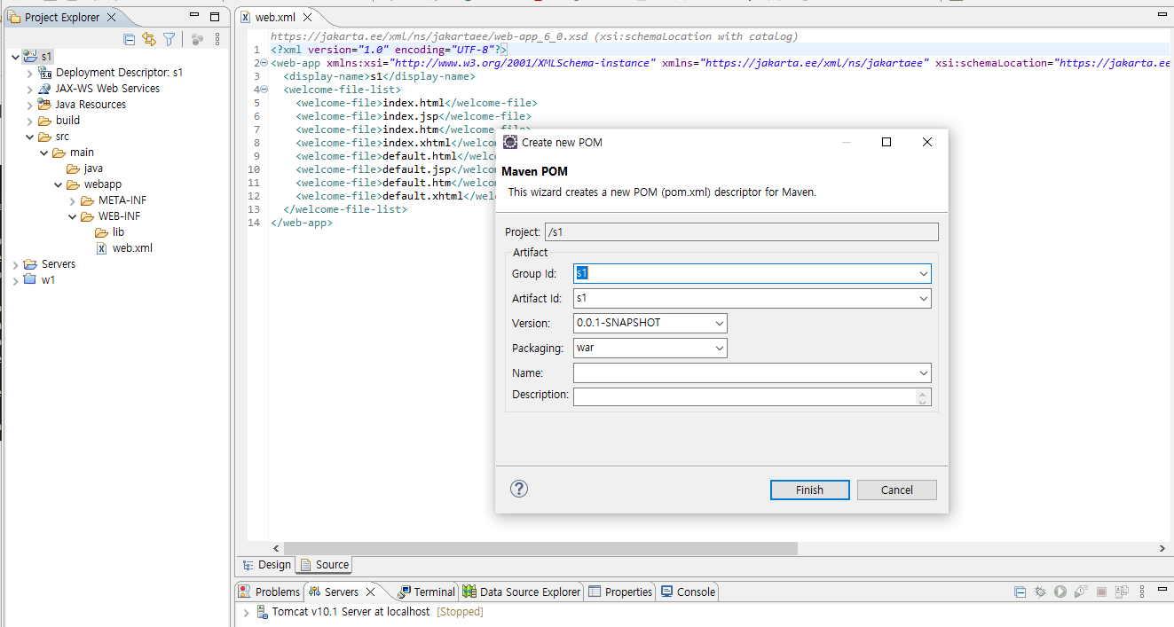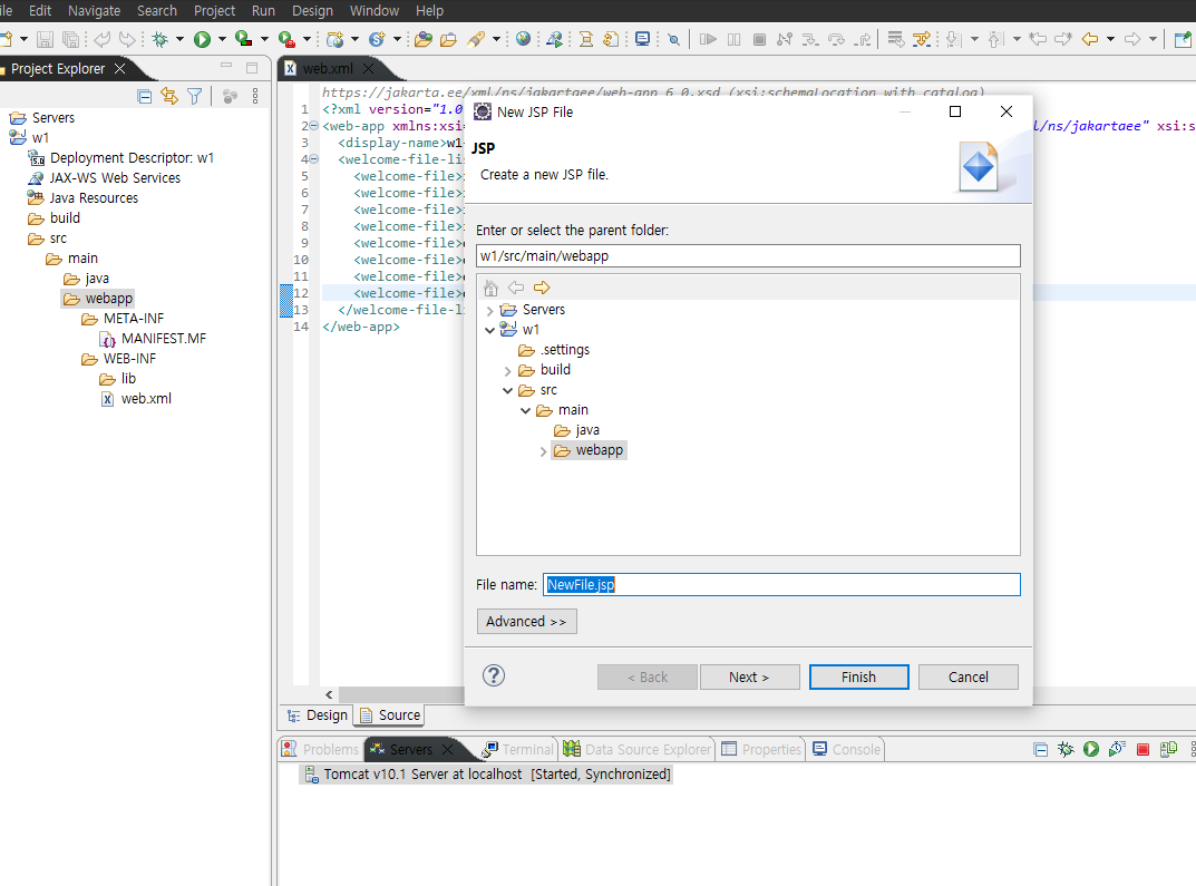 src/main/webapp에서 hello.jsp파일 작성 후 Run As 로 실행